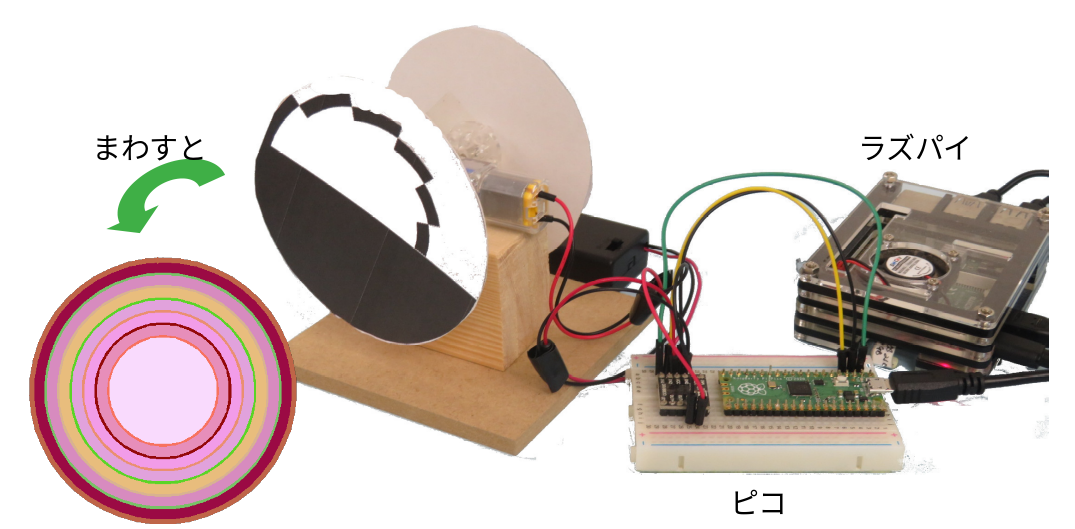 Pythonプログラミングにより色々なBenhamの円盤模様を作図し、円盤をモーターで回転、回転速度や回転方向を変えて出現するカラーのリングを観察・記録、 謎解きに挑戦します。