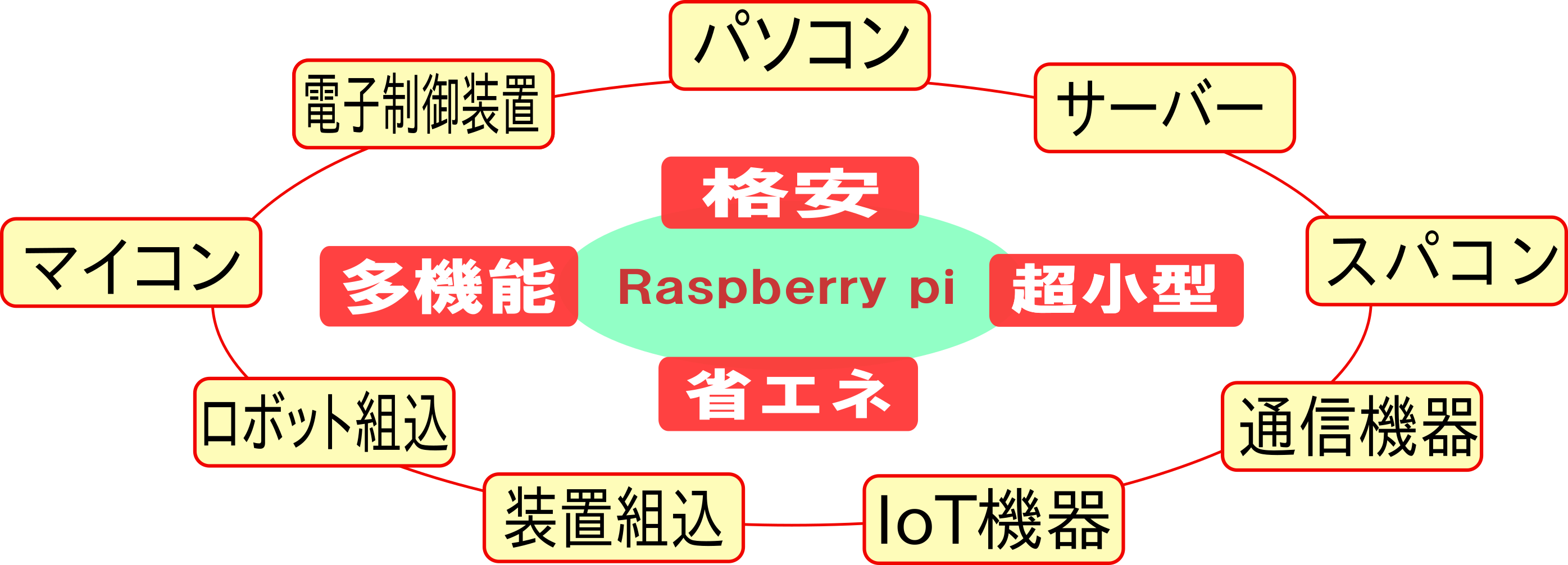 格安・多機能の名刺サイズコンピュータ・Raspberry Pi(ラズパイ)は、パソコン、サーバー、スパコン、IoT、ロボット、、など多彩な使われ方で 様ざまな使われ方をしています。
